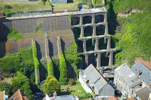 A common misconception is that the brick arched structure to the rear of properties in Caves Road were used for tuberculosis patients in the hospital behind them on West Hill Road to get air. This is incorrect - the arches being merely, perhaps, an over-engineered structure to stabilise the cliffs behind.