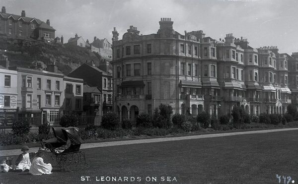The construction date of the structure is as yet unknown, but certainly within the 20th century, the arches not being visible in a Broderick photograph dated to 1905. It is possible that they were constructed post WW2, for there is reference to the Marina Fountain being damaged by rock falls in 1939[1], with some references to the brickwork concealing cave entrances including possibly those of the St. Leonards Caves.
