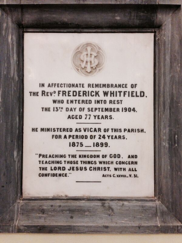 The foundation stone was laid by Henrietta, Countess of Chichester in 1825[4] and the first incumbent was the Rev. William Wallinger[5], the first service in the new church taking place on the 27th of January 1828[6].