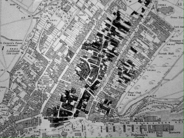 Starting in 1934, Hastings Borough Council identified some 45 areas that contained what were identified as slum properties. These areas were to be cleared, some in the making way for The Bourne to be run through the valley in the 1960s. Over 600 people from 192 houses[1] were to be rehoused in new council housing to be built at Bembrook. Unfortunately, World War 2 intervened and the actual clearance was not completed until the early 1970s.[2] A few buildings survived in spite of being earmarked for demolition, perhaps the most prominent of these being the buildings in West Street[3]The properties were designated as slums by means of a number of criteria, key among them being density of buildings and ventilation to the same. By way of example of the size of the buildings, it was estimated that for a large number of the properties, over 4 of the slum houses would fit into the large committee room of the Town Hall, which was measured at 27 x 18 foot and 13 foot high.[4]