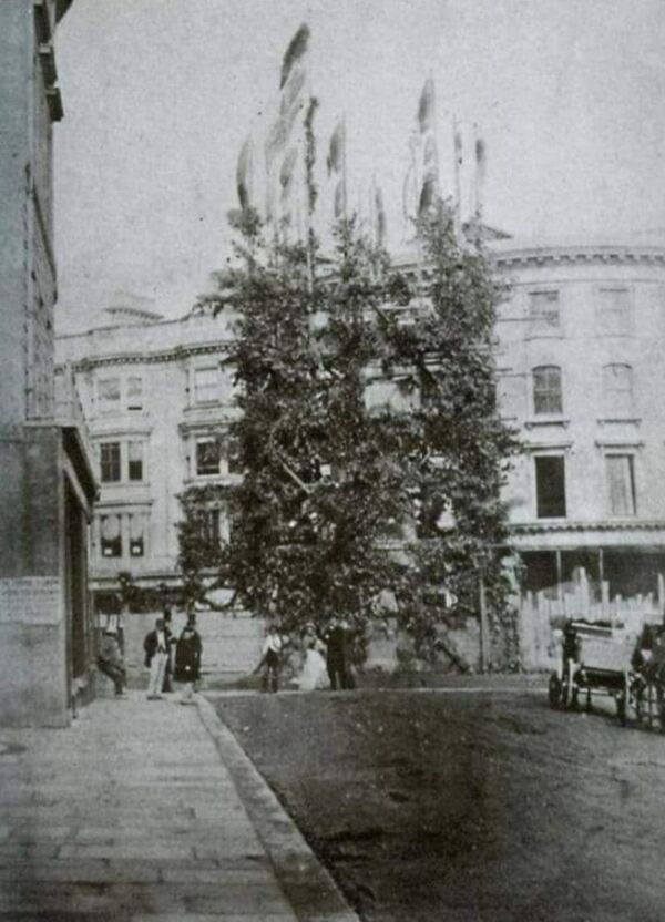 The memorial stood in the road that now leads from Harold Place to Havelock Road as shown in the map overlay to the left. A common misconception is that one of the circular features in the paving of the area was the location - this actually relates to the Southern Water Storm Drain.
