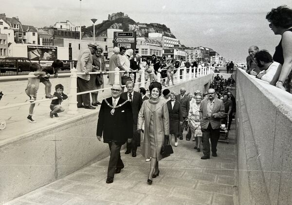 In 1972, the eastern end of the car park was partitioned off and construction of a pedestrian underpass started. This added entrances on the seaward side of the car park and also outside the Queens Hotel, with the opening taking place on the 27th July in that year, Alderman T. Mears officiating. The previous vehicle entrance ramp from Harold Place became the third entrance to the underpass, this explaining its increased dimensions compared to the other entries.