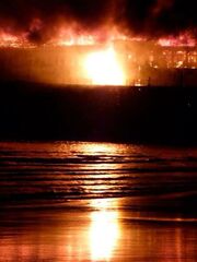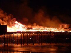 A fire, set deliberately in the Ballroom area, driven by strong winds, swept through the superstructure of the pier at 1 am on the 5th of October 2010[13]. Two teenagers were arrested near the pier to face charges of arson, but the prosecution did not proceed, the youths being released[14].