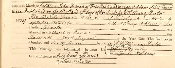 John married Margaret Adams in St. Clement's Church on the 16th of August 1767[3].