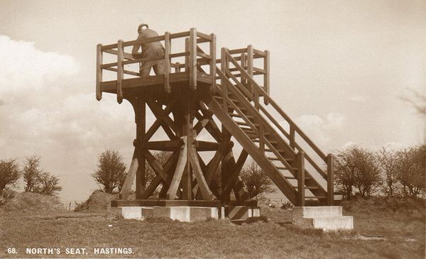 The seat was replaced with a wooden elevated viewing platform, featuring the brass orientation table at the summit in 1930, this being utilised during the Second World War as an observation point and demolished following vandalism in 1982. All that remains on the site today is the brass orientation plaque and aforementioned trigonometry point.