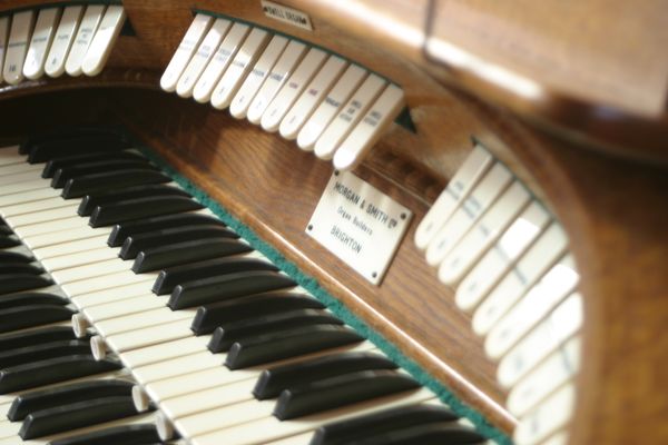 The church features a Forster & Andrews (later overhauled by Morgan and Smith) two console organ with highly ornamented pipes mounted unusally above the altar behind the minister[8]. Some pipes are currently stored laying down due to deterioration in the mountings and other stops are believed to be inoperable.
